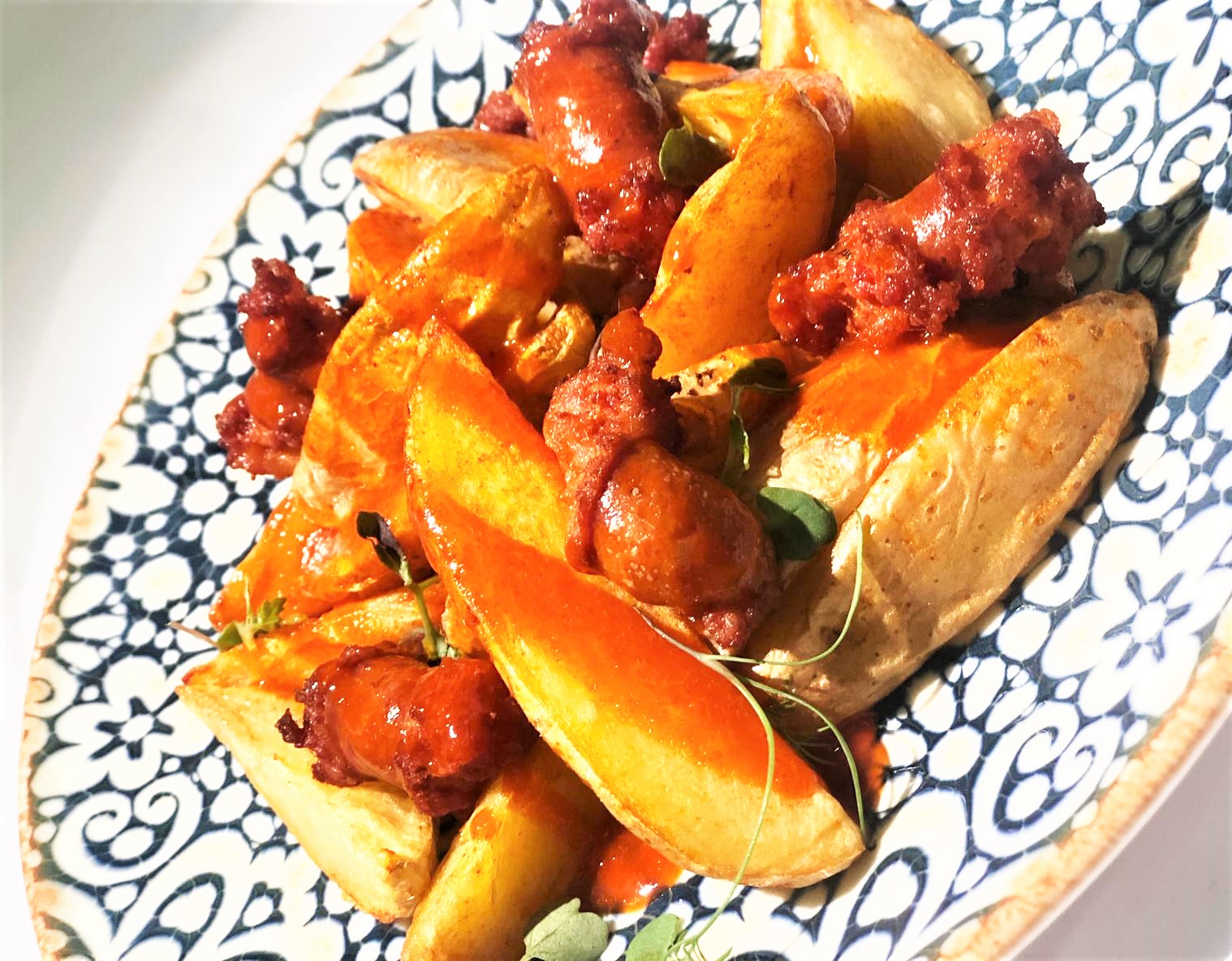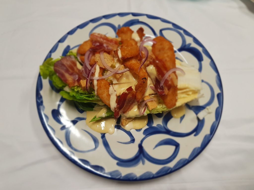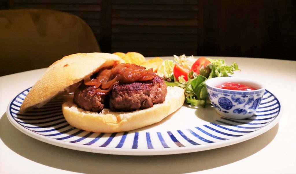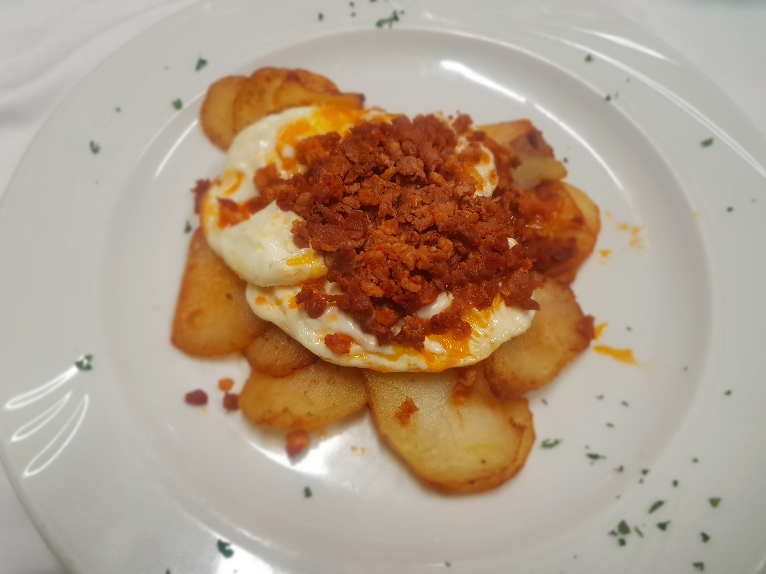 Hamburguesa Tipo Smash de Matilde con cebolla, huevo, bacon y queso.